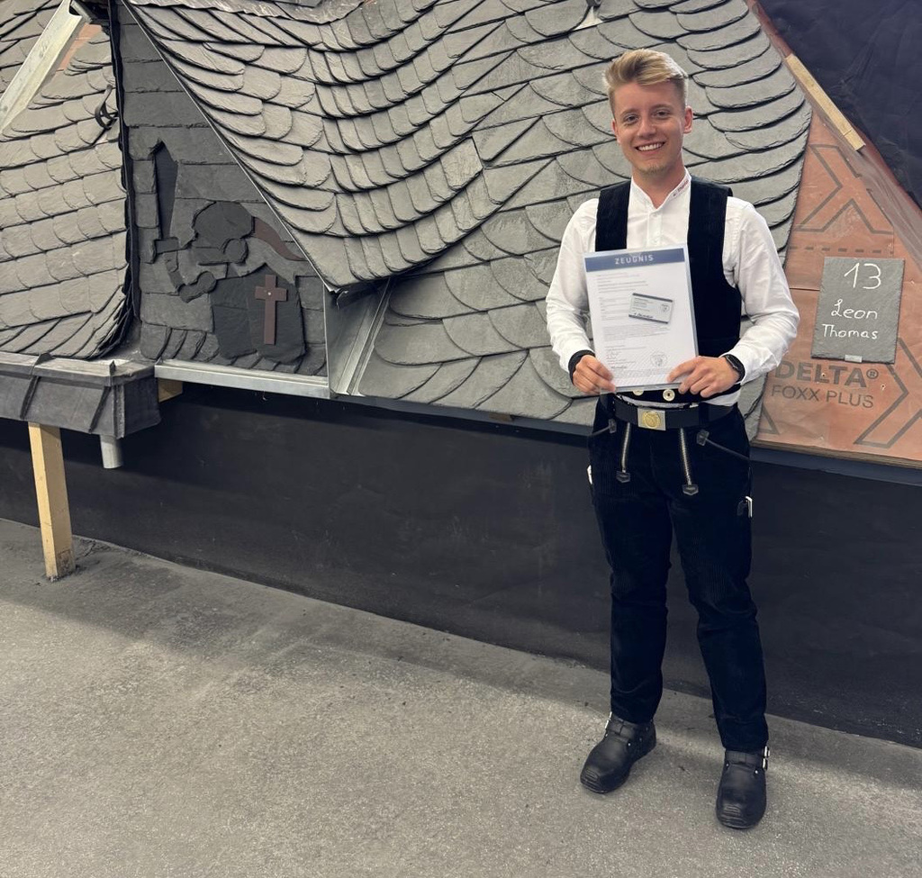 Wir freuen uns sehr, bekannt geben zu dürfen, dass unser Kollege Leon Thomas am 27. Mai 2025 erfolgreich seine Meisterprüfung im Dachdeckerhandwerk abgelegt hat.